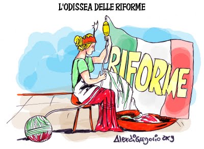 In un paese dove il bipolarismo è pro o anti Berlusconi e quindi malato forse le riforme strutturali sono impossibili, perlomeno nei prossimi dieci anni, forse è meglio vivacchiare ancora un po’ fino a nuovi scenari e mettere mano a modifiche più vicine alla vita dei cittadini e delle piccole e medie imprese. Certo è una resa ma perché aspettare tre anni quando ci si può arrendere subito?