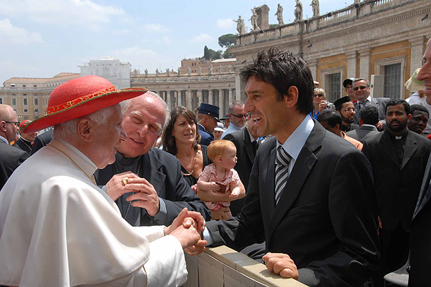 L’arbitro svizzero Massimo Busacca (nella foto insieme a Papa Benedetto XVI), non certo uno qualsiasi, dato che gli fu stata affidata la direzione dell’ultima finale di Champions League tra Manchester e Barcellona, ha forse realizzato il sogno segreto e inconfessabile di tanti arbitri : rimandare al mittente le offese ricevute durante la partita, facendosi un baffo del noto precetto evangelico.