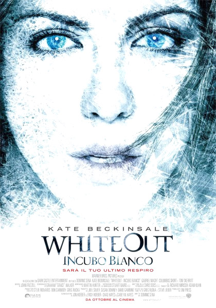 Whiteout, ossia un ciclone di neve che spazza l’Antartide rendendo quasi impossibili le condizioni di vita. E l’interesse per il film nasce tutto dal Continente Perduto, affascinante ultimo lembo di terra solo sfiorato dall’Uomo Dominatore. Attorno alle condizioni estreme che comporta affrontare la lunga notte semestrale a quelle latitudini si muove un buon thriller, con un killer che si nasconde tra la comunità scientifica e gli inevitabili strascichi di diritto internazionale che innesca un omicidio in quella terra di nessuno. Il tutto in un’atmosfera claustrofobica dove mettendo il naso fuori dai container (non quelli d’Abruzzo col frigo pieno) si rischia la vita se non si fa attenzione, e segnare un -50 significa una bella giornata. Per un film che si muove sui binari giusti con qualche scena che non ti aspetti come il nascondere diamanti dentro cosce e stomaci dei cadaveri e l’amputazione di due dita assiderate alla bella Kate Backinsale, è proprio l’attrice che fa storcere il naso. Non tanto per un’interpretazione comunque nella media o per quella scena sotto la doccia che sembra girata ad uso e consumo del mito sexy da rispettare ed alimentare, piuttosto perché è difficile credere che in Antartide si mandi a far lo sceriffo una gnoccolona come lei in una situazione di totale isolamento e con tanti topi da laboratorio con costante alzabandiera a parte i momenti di farsi una passeggiata per i deserti di ghiaccio a cercar batteri preistorici. Ma a parte questo mio piccolo appunto, subito rintuzzato dalla già citata scena in stile Saratoga il silicone sigillante, il film rimane godibile fino in fondo.